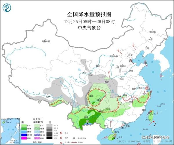 具体来看,今天,黄淮东部、西北地区东部、西藏南部和东部、青海南部、江汉西部、西南地区中部、云南西北部等地部分地区有小到中雪,其中,川西高原北部和四川盆地西南部等地部分地区有大雪(5~6毫米)。浙江中南部、西南地区东部和南部、广西西南部、海南岛、台湾岛等地部分地区有小到中雨,其中,云南东南部等地部分地区有大雨(25~35毫米)。